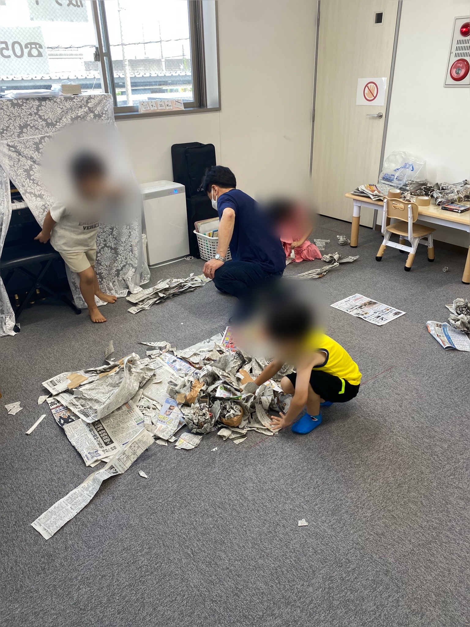 どれみでは楽器を奏でるだけでなく、新聞紙や折り紙、広告の紙など、身近な素材を使った創作活動も大切にしています。