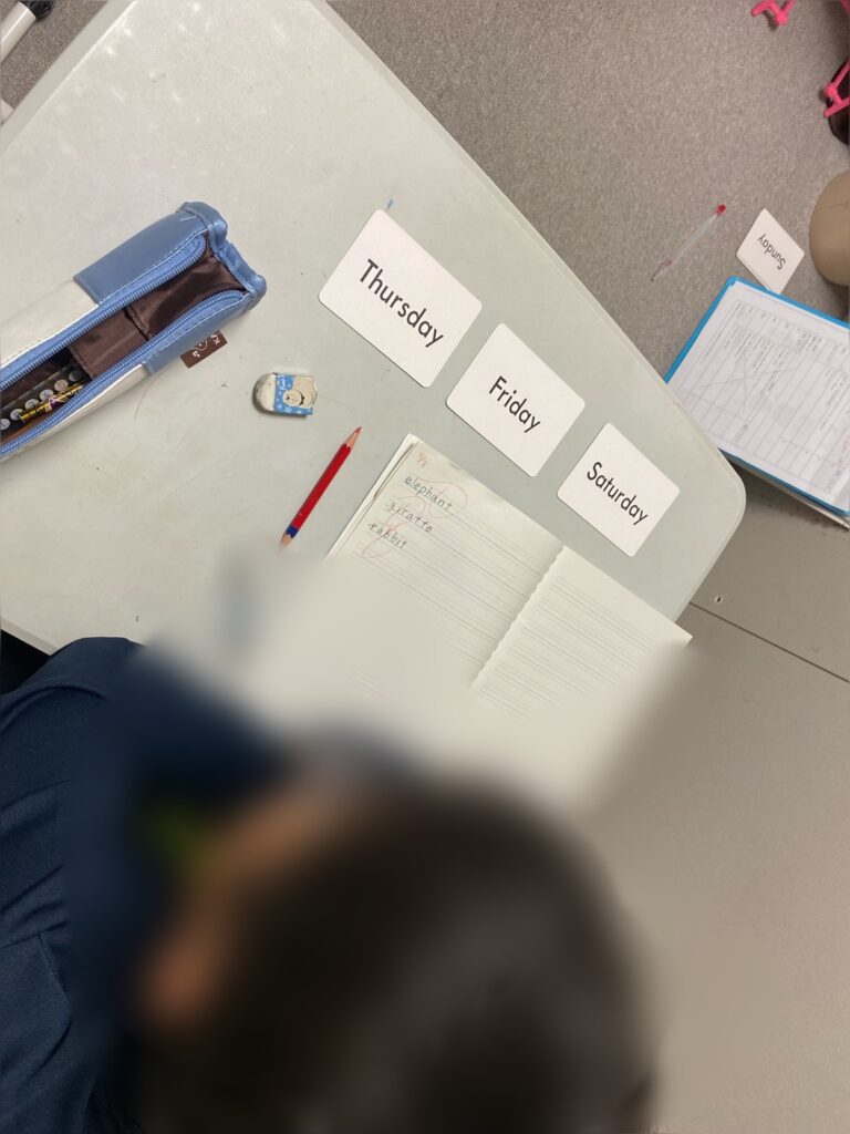 3年ほど前からご来所されている利用者様、曜日の絵カード並べから始まり、今では文字の習得の段階まで来ました。