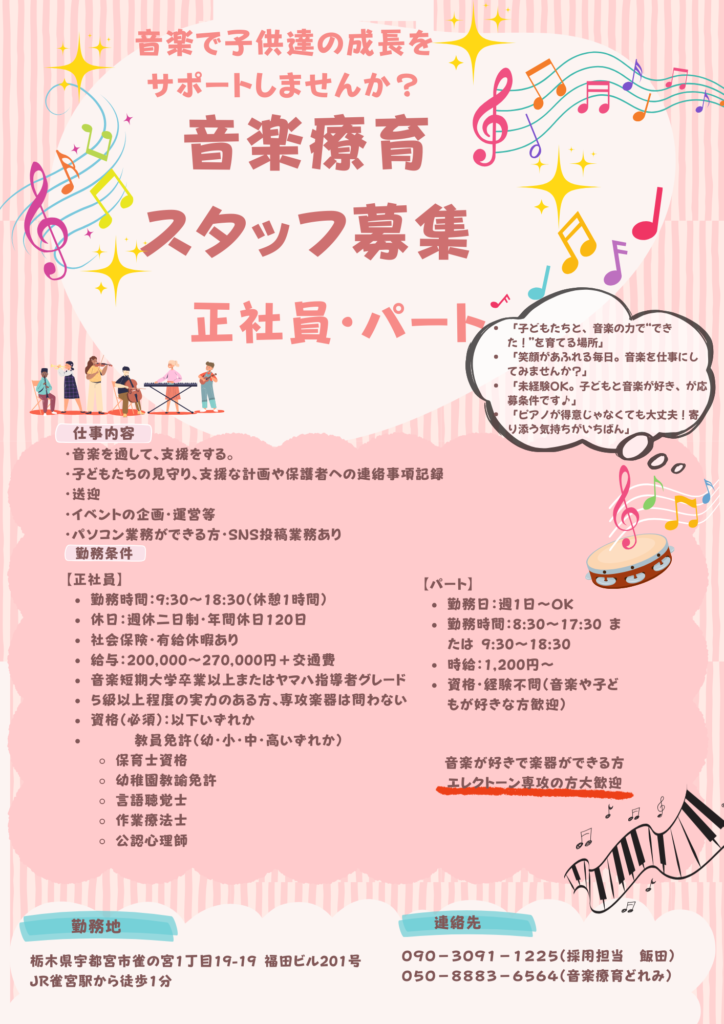音楽療育どれみスッタフ募集中