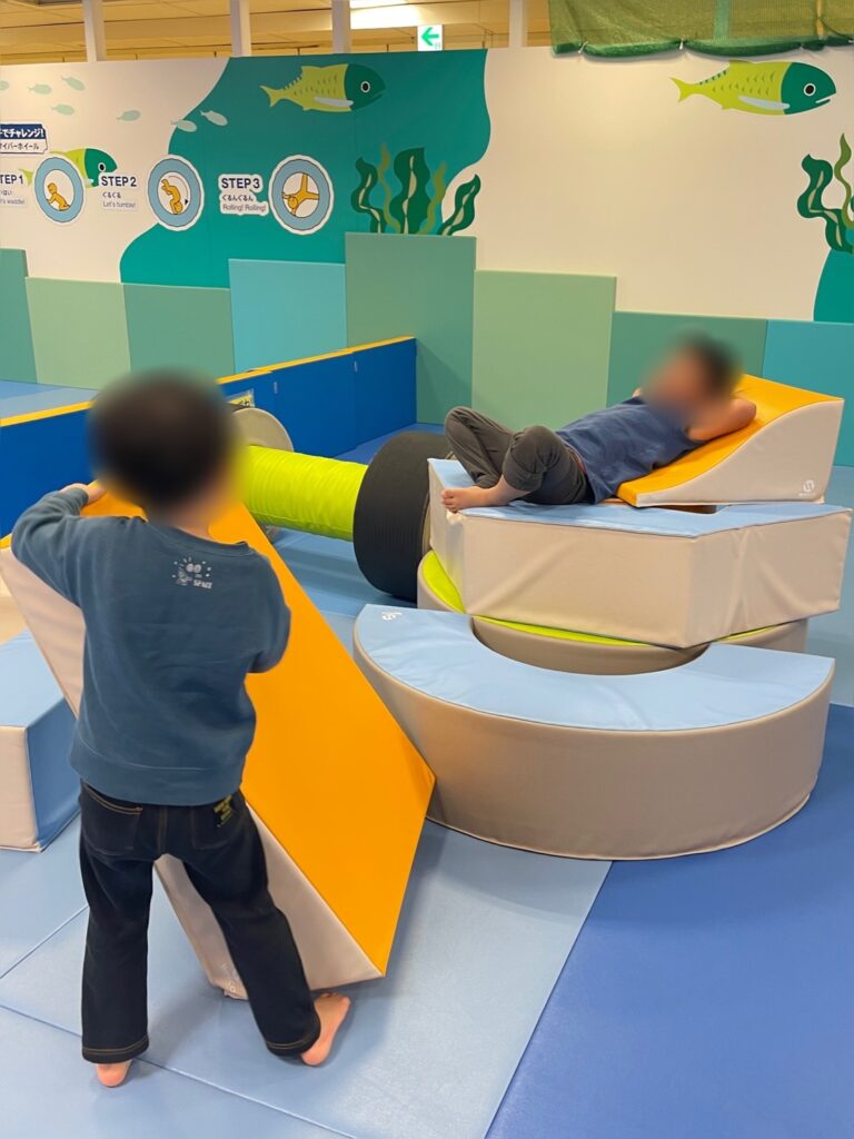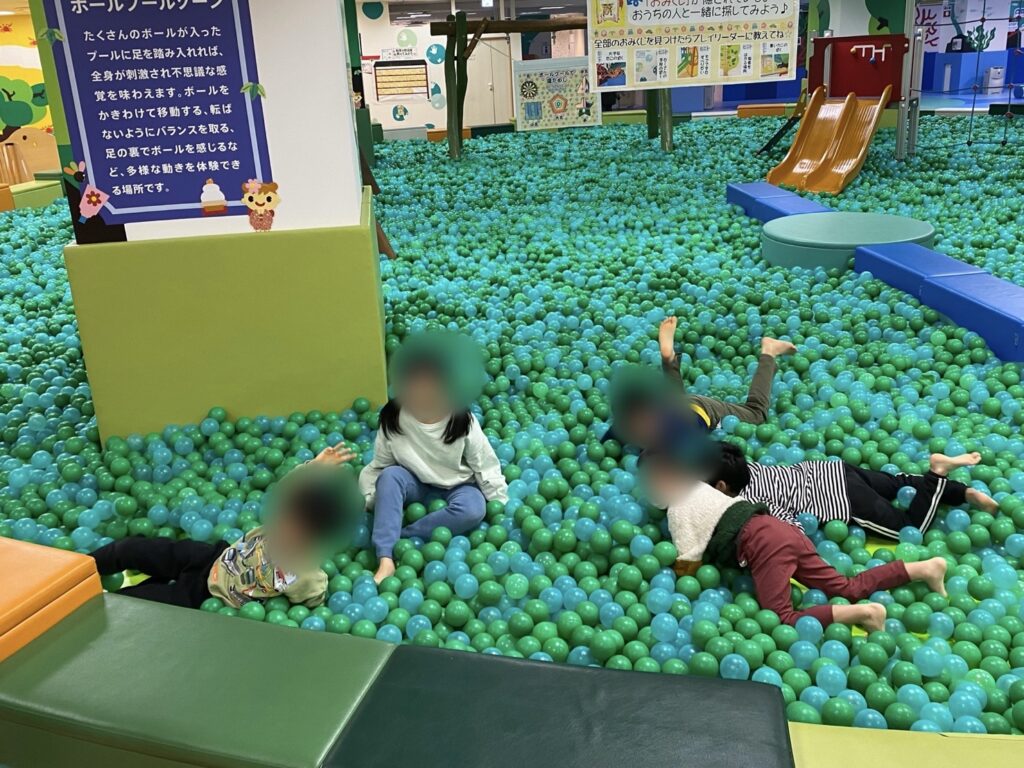 ボールプールなどの不安定な足場で、触覚・前庭感覚・固有需要感覚を同時に使うことで、感覚の過敏・鈍麻の調整に繋がります。